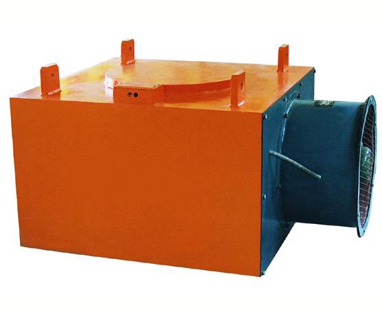 風冷電磁除鐵器,采用空調或軸流風機強迫風冷,增加風道,增大線路與空氣的接觸面積,改善風冷效果。大型除鐵器采用軸流風機,風壓高,風量大,風冷效果強??刂乒癫捎寐撴i機構,即風機一停,除鐵器勵磁立即停電報警。