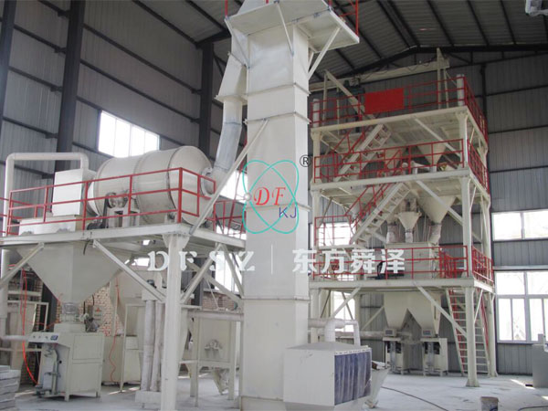 玻化微珠保溫砂漿膠粉料由雙組份生產線部分生產完成,由螺旋輸送機輸送至儲存倉,等候單組份生產線配料使用。